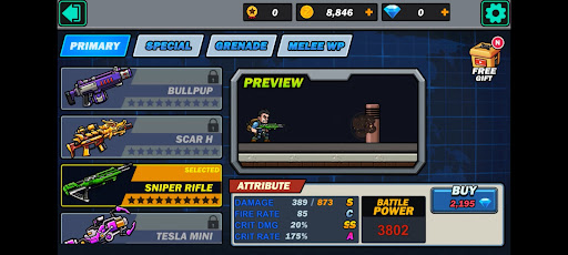 Kill enemy soldiers, make shooting combos and earn coins and diamonds. Then use your coins to unlock and purchase more powerful grenades, primary, and special weapons such as Uzi, Shotgun, M4 CQB, Bullpup, Sniper Rifle, Famas, Fire Ball, Kame Power, soldier knives, and more! These weapons in this soldier-shooting metal guns game have higher damage, fire rate, critical damage, critical rate, and battle power.