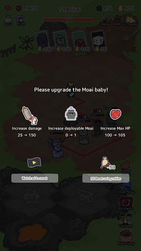 Pick and place randomly appearing Moai, and merge the same Moai to make them stronger!
