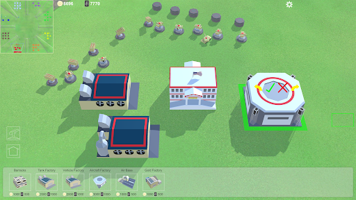 There are four military buildings namely Barrack, Tank Factory, Vehicle Factory and AirCraft Factory. Barrack allows buying soldiers. Tank Factory allows the purchase of tanks and tracked vehicles. Vehicle Factory allows the purchase of Wheeled Tank, IFV, BMP and mobile missile systems. AirCraft Factory allows buying UAVs, attack helicopters, fighters, bombers (to be able to buy bombers you need to build an Air Base).