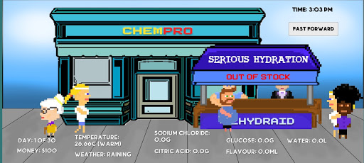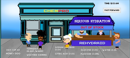 Partnering with Australian owned pharmaceutical company Rehydraid, we have created Rehydraid: The Game. It is your job to manage inventory and work with and against your environment and the customers expectations of your Rehydraid solution. Good luck!