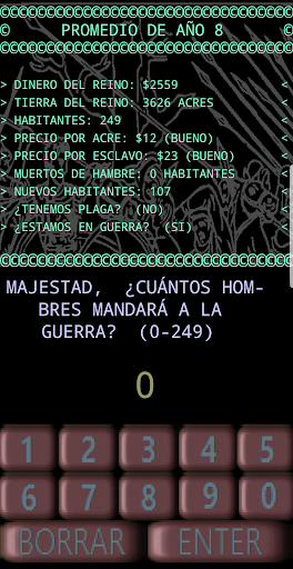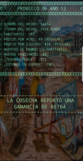 Luego, se te preguntará cuantos acres deseas plantar. Esto dependerá del dinero del reino y de los habitantes disponibles. Es muy importante que hagas una buena cosecha porque es el único medio que tienes para recaudar dinero. Si una plaga ataca tus cosechas, perderás algo de dinero.