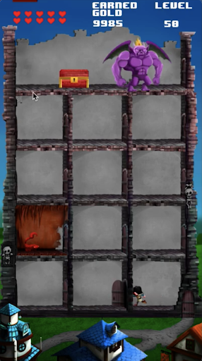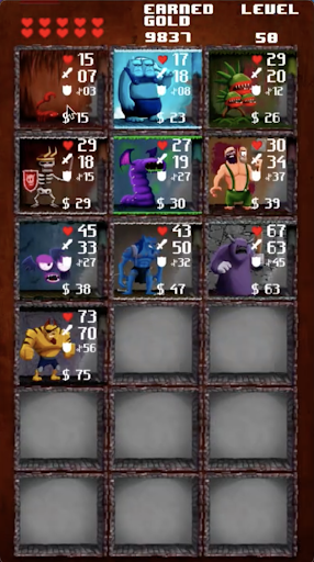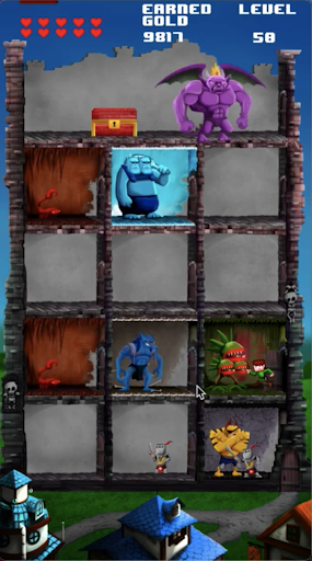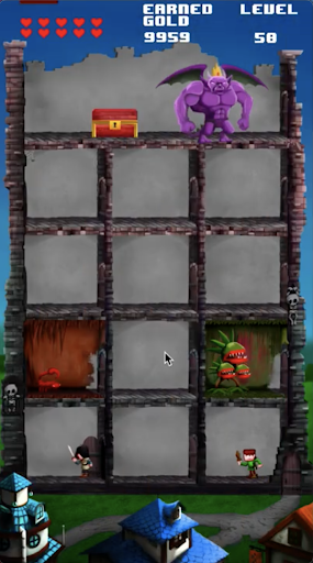 Protect your castle from the villagers’ warriors, earn gold by defeating them, build up to 10 different monsters dungeons for more than 200 levels.