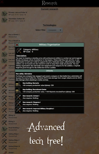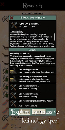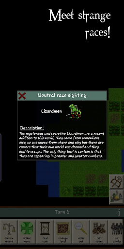 Rising Empires 2 features a rich and large technology tree and loads of buildings ranging from regular marketplaces to structures unique to specific races. Expand by building both settlements and fortifications. And even better: design your own troop types and try to master the advanced combat system with your own strategy. Make war against other empires, undead Ghouls, raging Minotaur clans, secretive Lizard men and powerful Dragons!