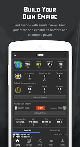 You will take part in air, land, sea and space wars, create your own newspapers and publish articles, use real world regions to form your own state and choose its form of government: dictatorship or presidential republic? It’s your choice!