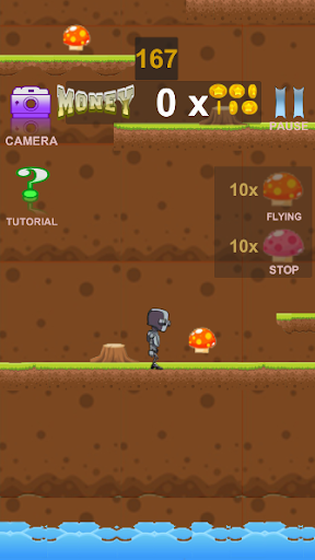 Vous devez récupérer la clé de votre maison dans le monde souterrain avant de rentrer chez vous pour éviter la montée de l’eau du à l’inondation fatale. Et cela avant la fin du temps imparti. Servez vous des bonus champignons pour faciliter votre ascension et votre survie. Bien utile, ces bonus champignons sont accessibles durant la partie et peuvent être acheter dans le SHOP via les pièces que vous ramassez. Soyez vigilent entre obstacles pour vous ralentir, ceux mortels dans le monde souterrain, et le temps imparti faites preuve de stratégie et de dextérité.