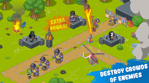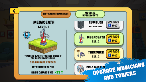 Rush to save the rock! Rush to test your musicians’ power in battle! Beat rushes of zombies and protect the scene! Customize upgrade your rock heroes & towers in battle as you clash with zombies. Place unique musicians and modules to defend your scene.
