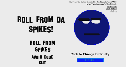 Take control of Blue Guy; a sentient blue ball who isn’t too impressed by his sole purpose in life. Which is to roll from the spikes! Use the joystick to take control of Blue Guy and try your best to keep him from reaching his terrible fate of being impaled by the nasty, pointy spikes!