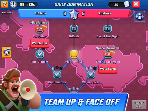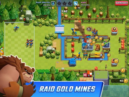 Rush Wars has everything you love in a strategy game and more: exciting and unexpected new characters, outsmarting the opposition, and competitive team battles. Rush Wars is a casual game for everyone to enjoy but provides the depth and challenge competitive players desire as they rise through the ranks. No hours wasted on designing and changing defensive bases, no long wait times to prepare your troops for battle. So start building your butt kickin’ squad and Rush into battle today!