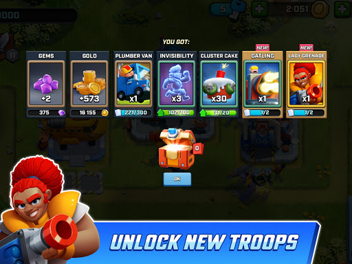 ● Discover the Rush Wars universe by earning Free Boxes to unlock troops and defenses