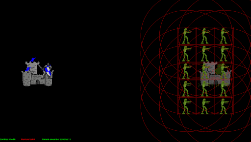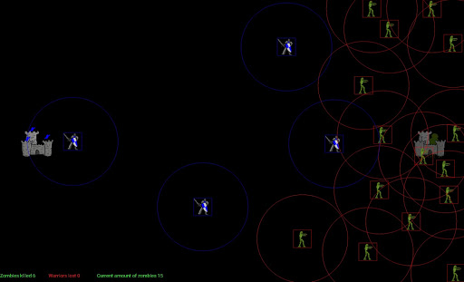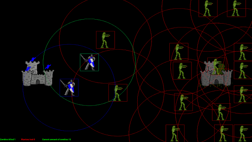You start out heavily outnumbered by the zombies and they are being reinforced faster than you. You must destroy their city (spawner) before they destroy yours. Units destroy other units by stepping on them. Can you outsmart the zombies?