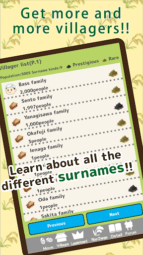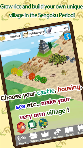 Select your favourite region in Japan, and as the leader of a village that bears your name, you will build and progress your village during the Warring-States Period. Grow rice in your rice fields and harvest them to collect Rice Points. The Rice Points can be used to build Castles, Housing and Rice Warehouses. It is your duty to gain more villagers and friends, and to expand the village.
