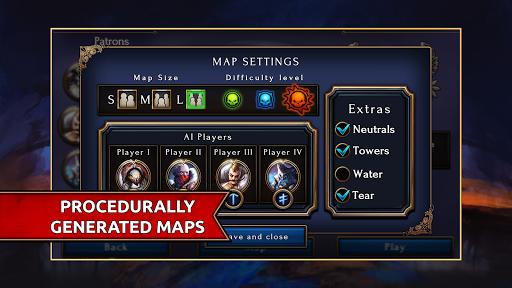 Elear, once peaceful land, has now become a battleground for ferocious beasts led by mighty Patrons. As one of them, you’ll be fighting your divine kin in the story campaign, on ranking maps, procedurally generated maps, and in the hotseat mode. When demigods clash, only one can remain on the battlefield!