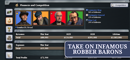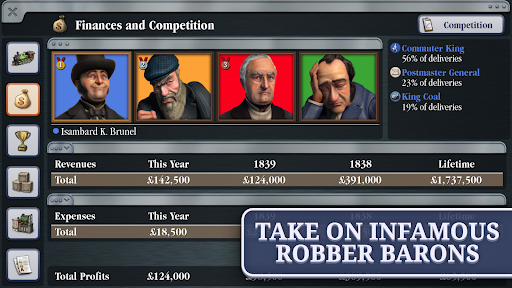 Take on world leaders and captains of industry. Grow your business by acquiring industries and railroad-revolutionising patents, or play the stock market and buy out the competition.