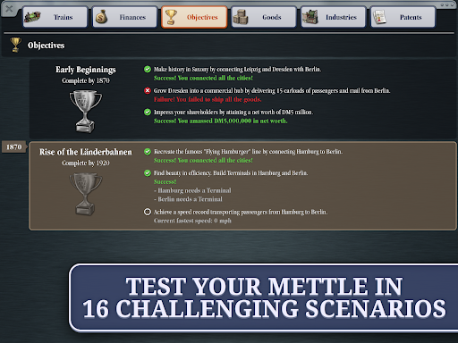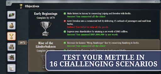 Test your entrepreneurial mettle in a mix of historical and fictional scenarios, each with a distinctive map and unique objectives. Establish the first passenger line in 1830s Great Britain, stitch together the American West during the Gold Rush, or help Santa with the Christmas rush at the North Pole!