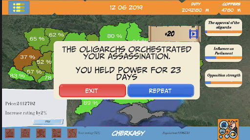 Welcome to “If I Became the President of Ukraine in 2019” – a political survival game that challenges you to navigate the complex world of Ukrainian politics and hold on to power for as long as possible. With this game, you will experience what it takes to lead a nation and make difficult decisions that can affect millions of lives.