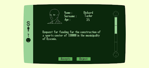 Take on the role of president of a newly formed state, make decisions that will not only affect the lives of your subjects, but also threaten you, your actions affect not only your life, but also the entire state.