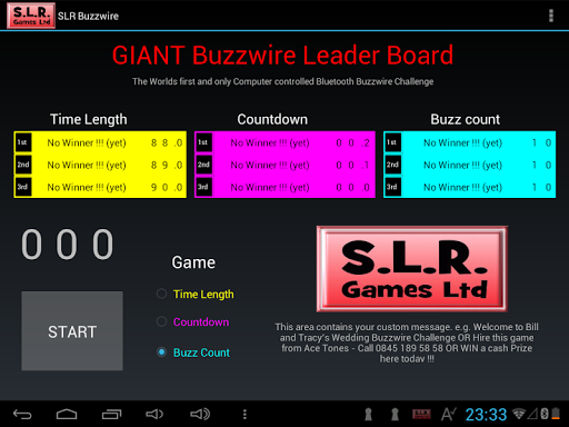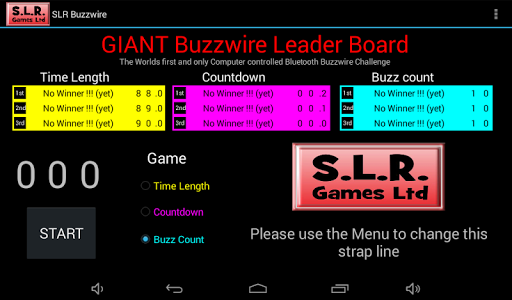 For use with SLRgames Bluetooth enabled, Computer Controlled Buzzwire Game. This app can be paired up with the game for logging high scores, displaying game play on a tablet or large screen TV via an android dongle/box.