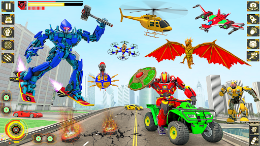 This Snake Car Robot Transformation offers you many modern features of transforming games as there is open ended customization for player with which he can select the game mode of his own choice. There are perfectly camera angles of flying car games in robot transform simulator which covers all angles of this transform robot war 2020 and player has no trouble to watch and observe all the action of super robot shooting. The smooth and easy game controls of car transform robot give you free and frank movement for robot shooting with which you can enjoy your stay in new world of robot transform games.
