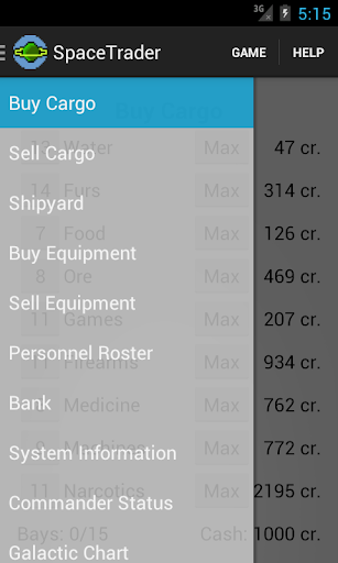 Space Trader is a strategy game in space. It is a port of the Palm Pilot game “Space Trader” by Pieter Spronck, which is inspired by David J. Webb’s PalmPilot game SolarWars (which in turn is based on Matt Lee’s game DopeWars) and the 80’s classic 3D strategy game Elite (though it does not have Elite’s 3D flight mode).