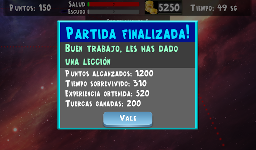 Juega partidas frenéticas y emocionantes luchando contra enemigos que intentaran destruir tu nave. Crea estrategias con las armas y el mapa de juego para intentar sobrevivir el mayor tiempo posible destruyendo a los enemigos.