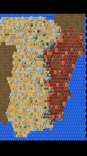 + Multi-layered AI: Instead of just attacking on direct line towards the target, the AI opponent balances between strategic goals and smaller tasks like encircling nearby units.
