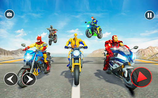 Super Heroes bike racing is the best action stunt game ever. You might have played different stunt racing games of 2022 e.g. car racing, impossible bike racing, zigzag paths, vertical ramps, sky high roads uphill racing, super heroes downhill racing, monster bike racing, real car racing 2022 but this real crazy adventurous motorbike racing game 2022 is different, interesting and addictive among all best superhero games.