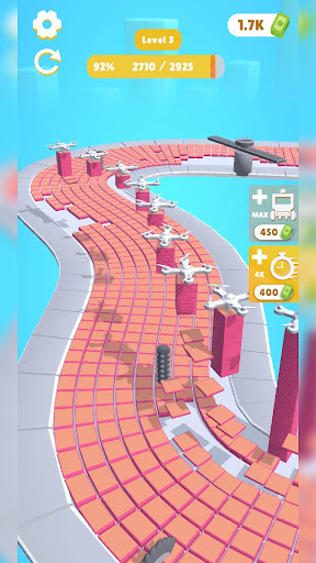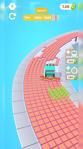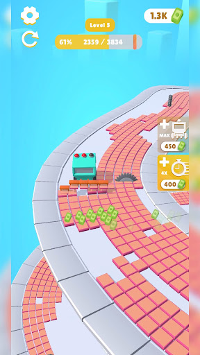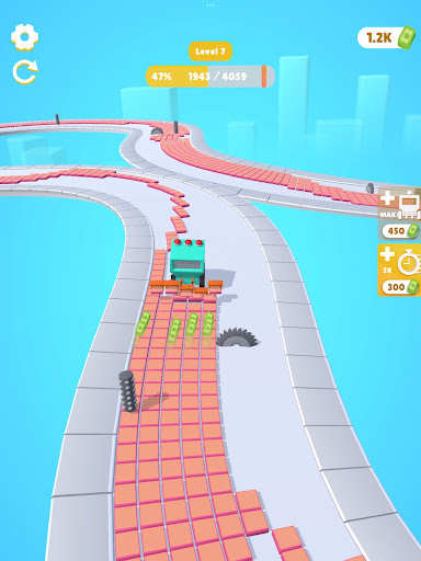 Control the tile installation machine through the empty parkour. Swerve to run away from the obstacles and stamp as many tiles as you can. Earn as you stamp and activate each feature. Continuously upgrade the speed and stamper count of the machine, get better, faster, stronger!