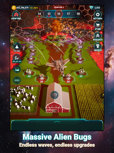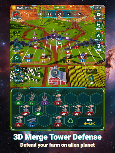 Welcome to “Star Farm: Merge Tower Defense”, defend your farm on alien planet and defeat endless waves of alien bugs!