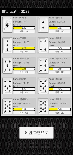 동일한 카드가 일정 수 이상 모일 경우 업그레이드를 하여