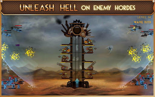 As the Imperial Army’s foot soldiers and mechanical monstrosities march into battle, fortify your epic spire with machine guns, cannons, lightning coil, saw launchers and more.