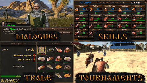 You have the opportunity to visit the Middle Ages in 1212, when the Mongol Empire was gaining strength in Asia, and the Crusades were in full swing in the Middle East. At your disposal is a huge map of the world, on which 20 large states are located. You have the right to swear allegiance to any state and soon become its king, or create your own, capturing more and more territories. Also, you always have the opportunity to fight with bandits and earn money by selling trophies. Buying land and creating a business will provide you with a comfortable existence. In addition to traveling on the global map, you can always personally take part in a battle with your army, whether it is a battle in an open field or a siege of a city, castle, port or village.