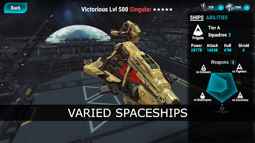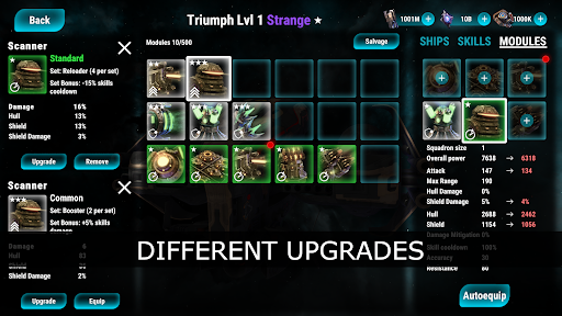 Upgrade your ships using a variety of methods – equip them with modules or level up their strength. Merge the squadrons to make them more powerful.