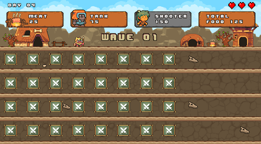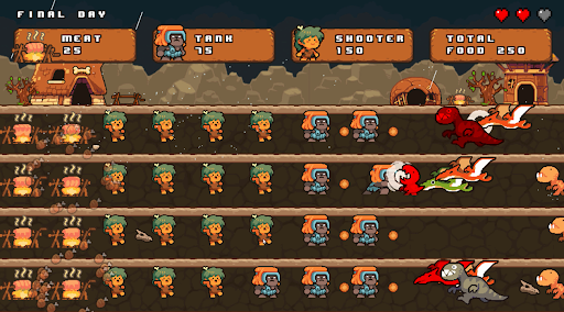 You have to defend the village from the dinosaur attack. Use warriors and shooters. Also remember about the economy, without food your village will collapse.
