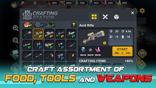 – Craft dozens of weapons and tools from your mobile base to help you survive