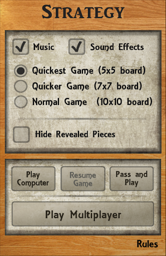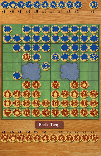 This game of strategy is a capture-the-flag strategy board game. You can play against the computer, or pass and play. It is a 2 player board game, where each player controls a set of different pieces that are unknown to the opponent. The goal of the game is to find and capture the opponent’s flag. Because each player cannot see the opponents pieces, discovery and exploration are an important part of the game.