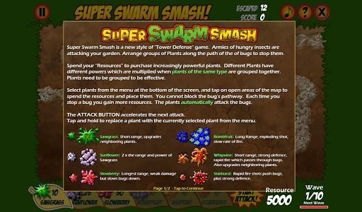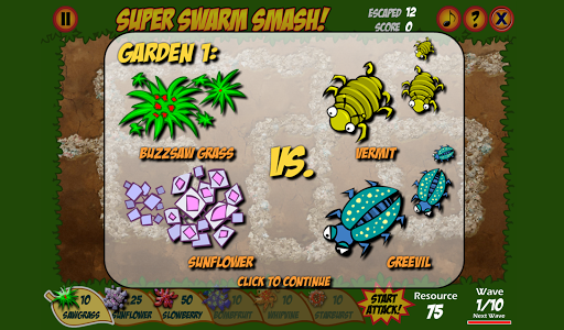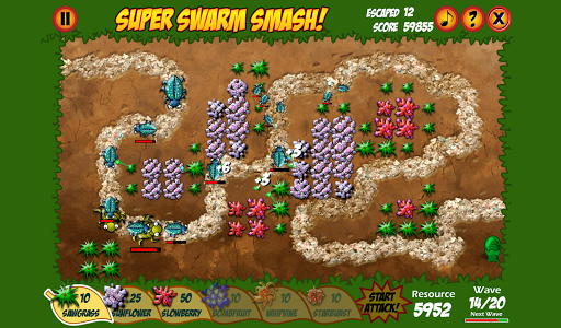 Super Swarm Smash is a new style of “Tower Defense” game. Armies of hungry insects are attacking your garden. Arrange groups of Plants along the path of the of bugs to stop them.