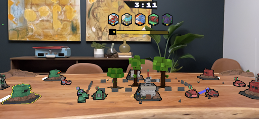 In Table Trenches, your table transforms into the battlefield! Grab a friend, scan your space, and battle it out, wherever you are. You’ll deploy your forces, capture towers, and fight to the last in this real-time tactics game, designed for AR. Smash the enemy with Logan’s mighty walkers, or melt their towers to the ground with Mei’s devastating flame tank – the choice is yours. The player with the most towers left standing will win the day!