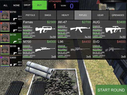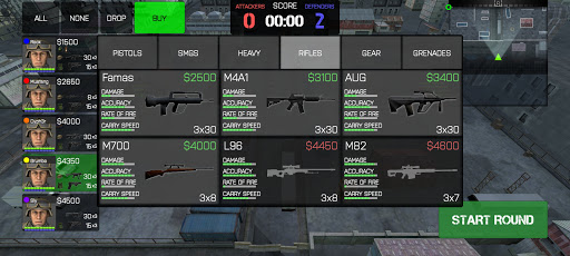 Earn money by taking down enemies and winning the rounds- then upgrade your weapons for the next round!
