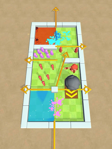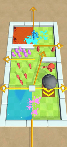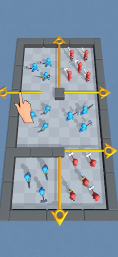 This is a war arena divided by huge pins. You have to pull the correct pins in right order to eliminate other teams and defeat your opponents!