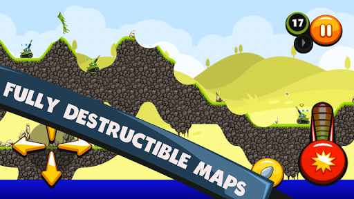 Fight and conquer the enemy on fully destructible levels with beautiful HD graphics. Collect all the power ups falling from the sky to help you win a duel. Selecting the angle and the power of the shot, note the direction and strength of wind to make your the shot perfect. Beware of water so as not to drown your tank!