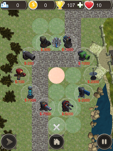 Classic defense style game with 10 different Turrets to defend your lands. 10 Maps with 3 difficulty levels offer many hours of gameplay. Level up your Turrets to advance and compete.