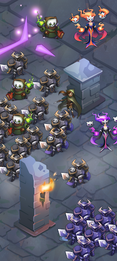 💀 Tap to Necromance is simple but very engaging. You will fight your way and will start with a small undead army. At different phases of the game, you will encounter stronger and bigger armies. By defeating them, slain units will join your army and you will become stronger and your army bigger.