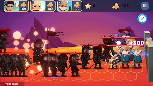 Auto battler – TFT inspired team composition. Different heroes have different abilities affecting themselves or nearby allies. Choose wisely where to place which hero.