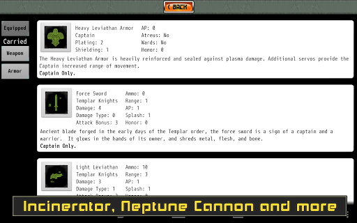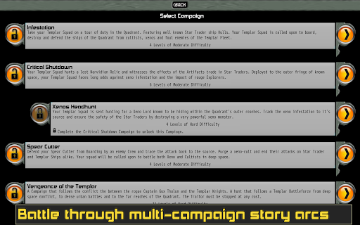Command your elite squad of Templar Knights in close-quarters tactical combat against the terror of the alien. Fighting in the tight spaces of starcraft, ancient mines, forgotten temples, and derelict space ships your Templars will face aliens, xenoforms, forgotten evils, ancient constructs, pirates and mad cultists.