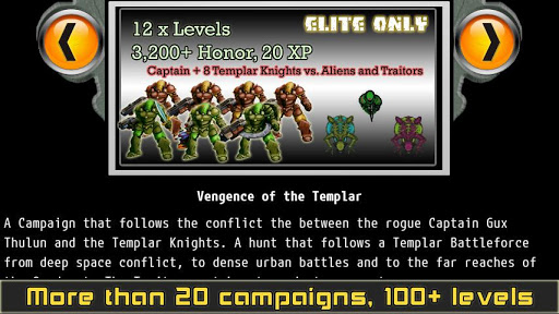 Then experience the Elite Upgrade! Elite includes 57 more levels, more enemy types, and over 45 new types of deadly weapons and mighty armors! Burn your retribution into the Quadrant as an Elite Templar commander.