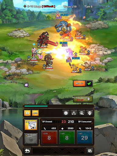 – Level up Attack, Defense, and Health points using SP points given by every turn. Your choices will affect the following class tree.