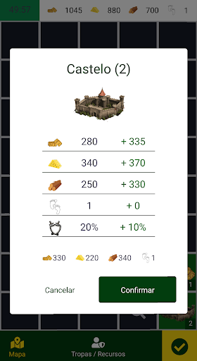 To acquire a new building, it is necessary to explore it, and for that to happen you will need actions and resources. Resources are divided into 3, food, gold and wood.