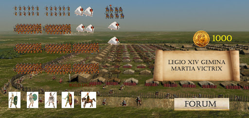 Dominate the enemies of the Roman Empire, tactical combat, build military units.