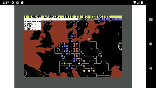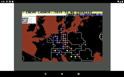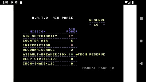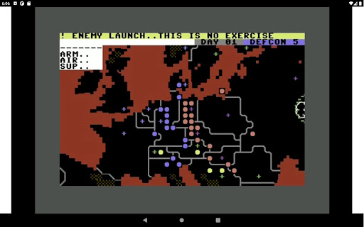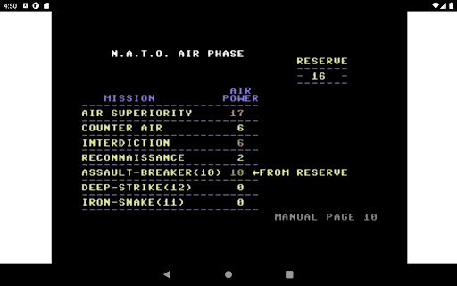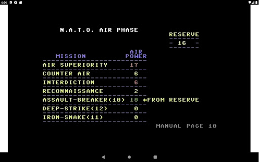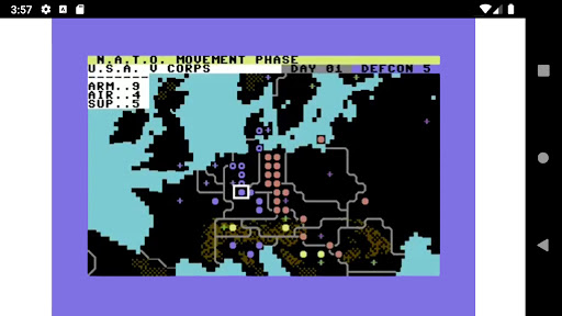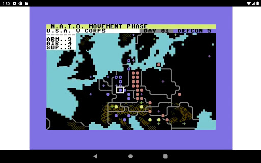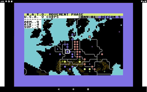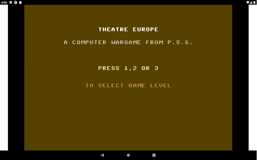 Theatre europe is a turn-based strategy game with optional shoot’em up screens. The game tries to simulate a world war between NATO and the Warsaw Pact during the 80s, and feature conventional battles as well as NBC weapons. The game is single player: the human player can chose one of the two sides and the computer will command the other side. For the Warsaw Pact, the objective is to advance with several divisions beyond the Rhine within 29 in-game days, while NATO has to prevent this. If the player launches a total nuclear attack, the computer opponent will always retaliate and this will lead to mutual annihilation. Imminent conventional defeat or repeated use by either side of NBC weapons may prompt the computer to launch a total nuclear attack, and if the player’s reflex system is on, he will automatically retaliate and this will lead to mutual annihilation; if the player’s reflex system is off, retaliation to such attack is not possible and the computer will win.