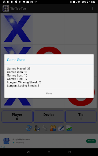 Pick your symbol (an “O” or an “X”) & try to beat your device or your friends by getting 3 in a row.